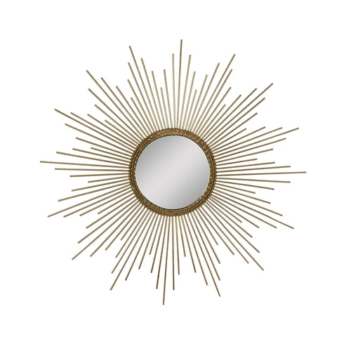 Highlight the contemporary design of your home with this handcrafted decorative wall mirror. It features a large center mirror, bordered by a sun-inspired frame. The metal frame is a sight to behold, thanks to its luxurious color and shiny finish.