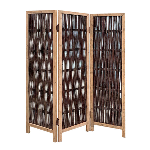 This 3 panel kirkwood screen is a beautiful room divider made of interconnecting branches between a wood frame. Ideal for adding a bit of separation between spaces while keeping areas on both sides bright and connected. Allows some light and sound to pass through. Finished on both sides. Bringing harmony and relaxation to your living space and creating an inviting look and feel.
