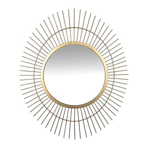 This Gold Metal Spiked Wall Mirror is the perfect way to freshen up your home decor. The frame around the mirror is made from stainless steel and finished to matte gold matte finish. The design of the frame leans more modern and contemporary but will look great with any interior style you have. The spiked design is free-floating with a thin border in the middle of it. The mirror in the middle is surrounded by a solid gold border which adds the perfect finishing touch to the piece. Light reflects off the surface of the frame and the mirror and makes your room look spacious and brighter. 27.5" H x 23.25" W x 1" D