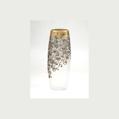 Handpainted Glass Vase for Flowers | Gold Painted Art Glass Oval Vase | Interior Design Home Decor | Table vase 12 in