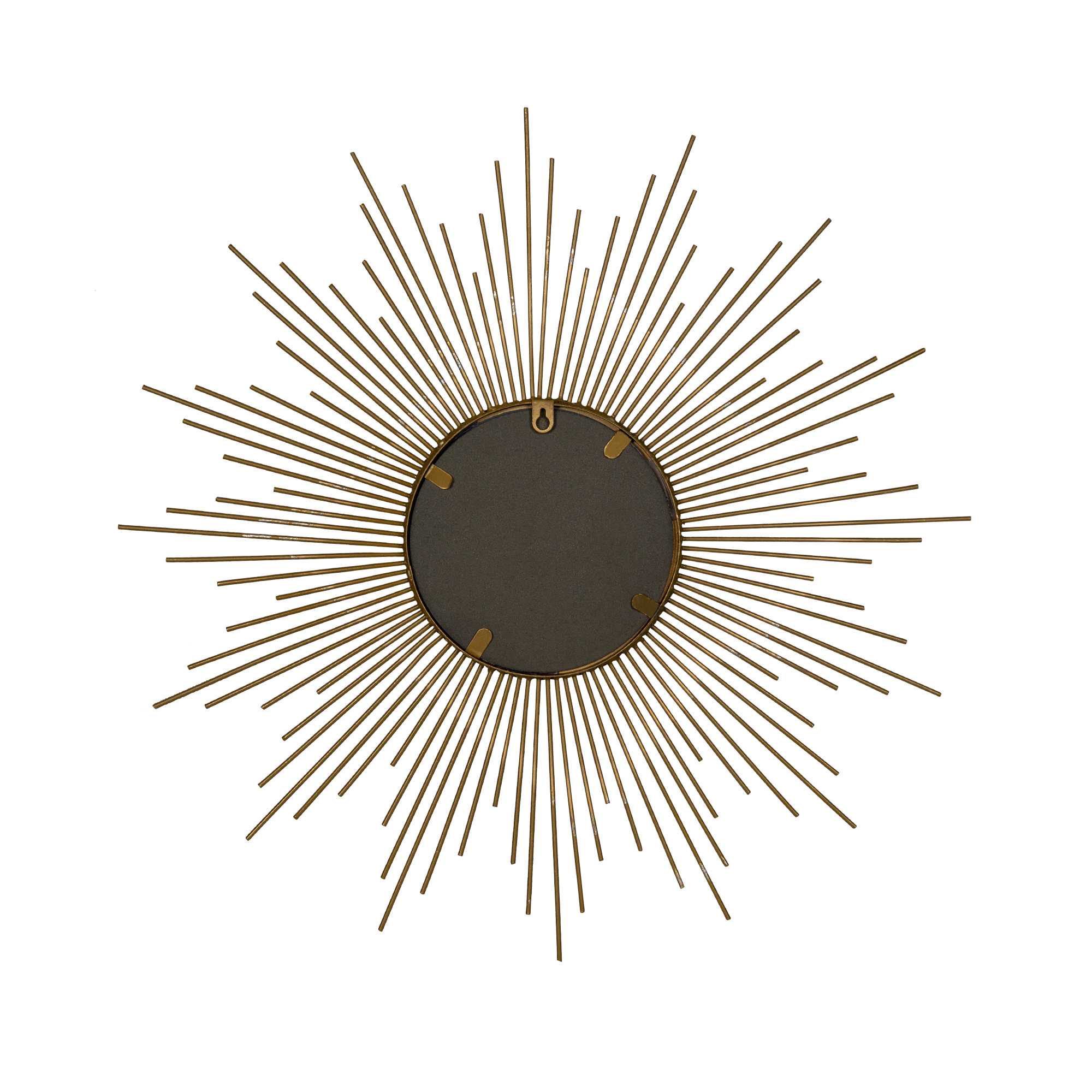 Highlight the contemporary design of your home with this handcrafted decorative wall mirror. It features a large center mirror, bordered by a sun-inspired frame. The metal frame is a sight to behold, thanks to its luxurious color and shiny finish.