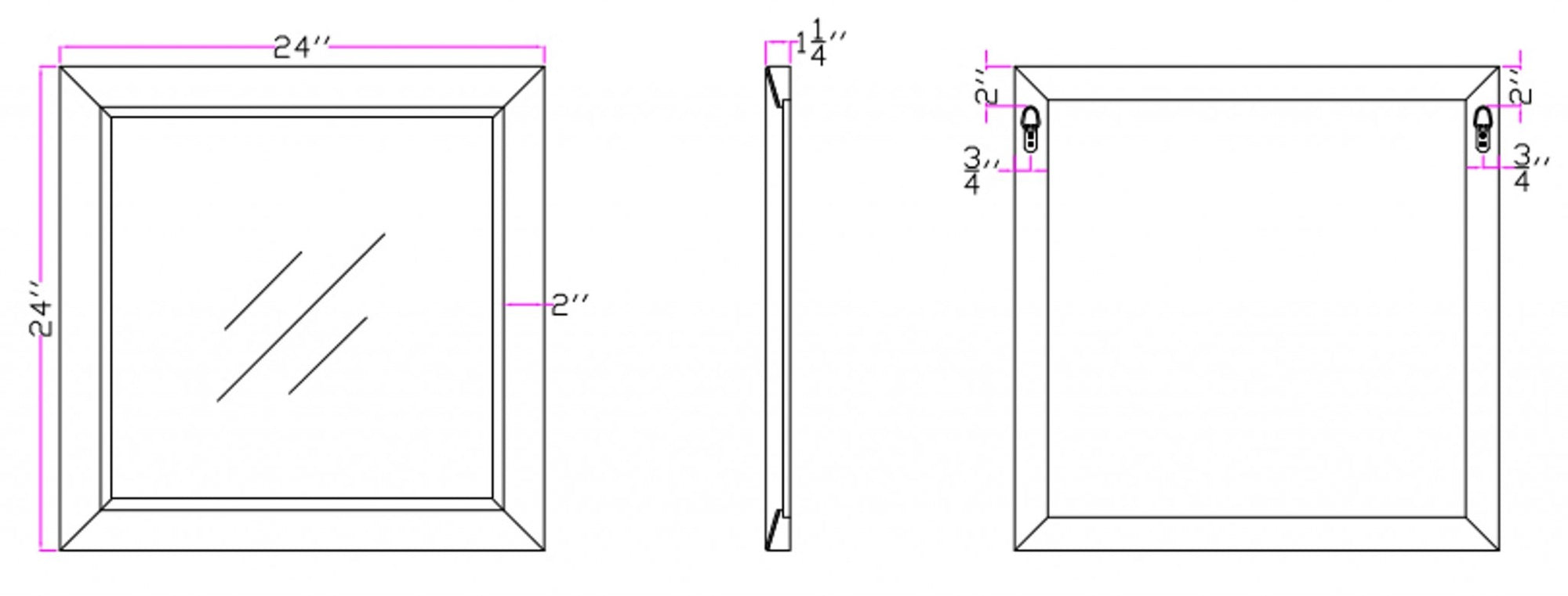 Neutralize your home with this Grey Square Glass Mirror. This mirror has a square frame, and features a flat glass edge, creating a contemporary and edgy look. It has a neutral grey coloring, that goes great in any room and also makes your home modern. It comes with pre attached d ring hanging mounts, that make this mirror easy to put up on your wall. 24" x 24 x 1.25".