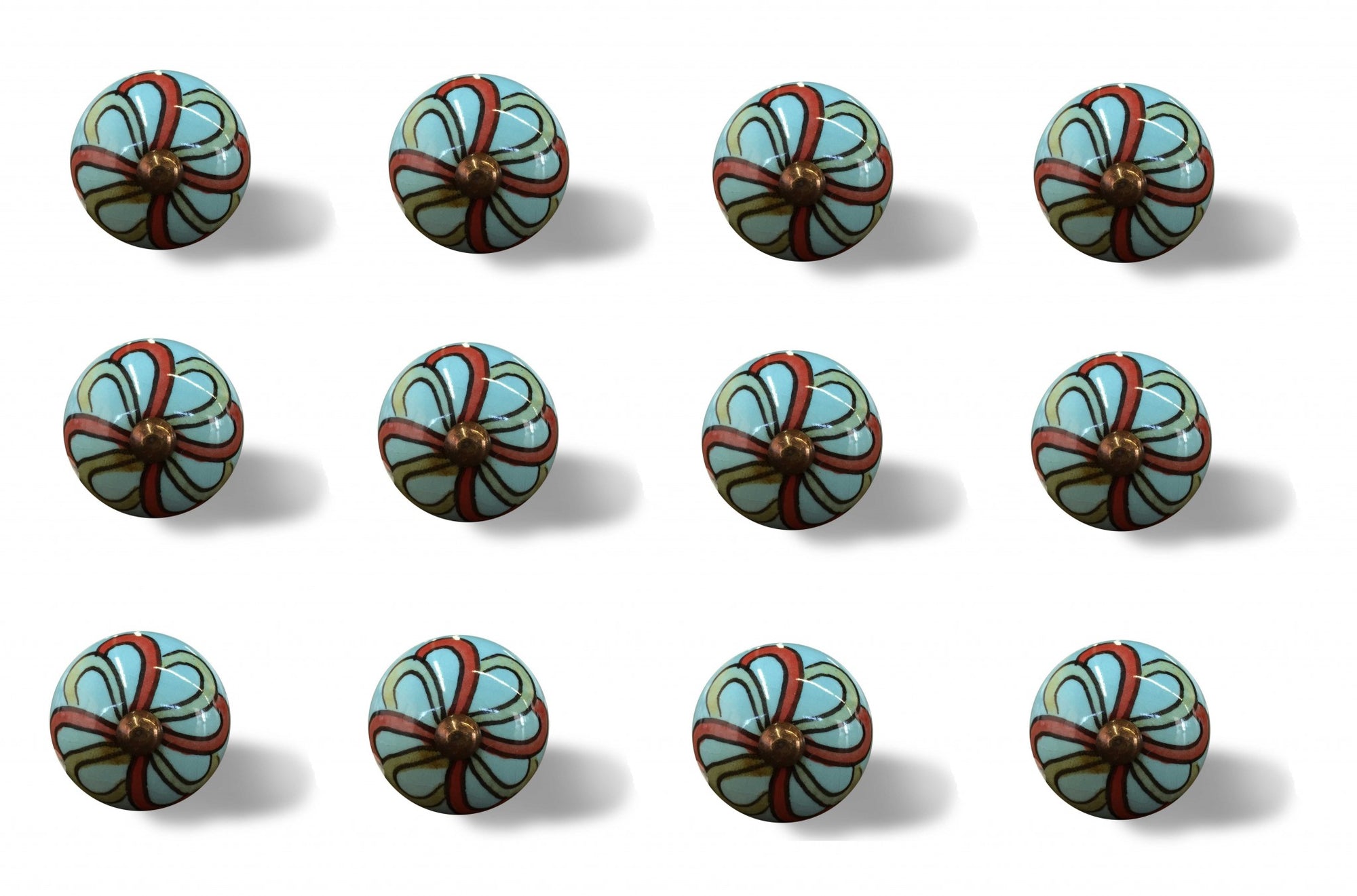 Bohemian Turquoise and Red Set of 12 Knobs